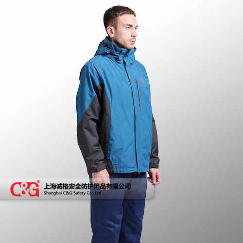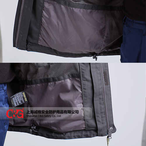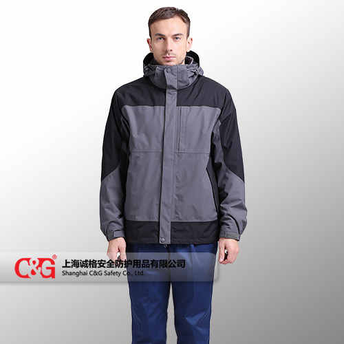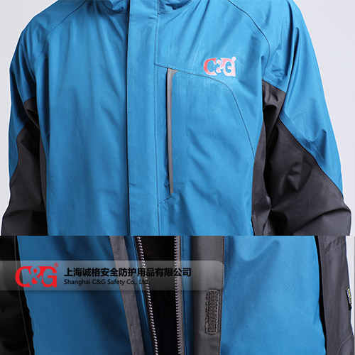 沖鋒衣 CG-CFF804采用符合涂層防水透氣面料制作,防水指數5000以上,可防中大雨;接縫全部采用壓膠防水拉鏈;內膽采用高效保暖羽絨棉,可單獨穿著;風帽可拆卸。