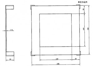 c) 試樣支架及安裝板:支架用于樣品的定位,安裝板規格為150mm×150mm,厚度1.6mm,中間有一個100mm×100mm的孔,每個角垂直焊接一個6.5mm高的角鐵。