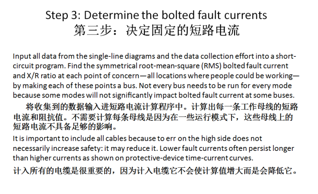 弧閃危害分析應該是短路電流計算和繼電保護協調的一項后續工作。使用短路電流計算的結果可以決定短路電流的瞬時值,設備額定遮斷能力和短路酎受電流值。 通過繼電保護協調的結果可以得出切斷過負載電流和短路電流的時間。短路電流計 算和繼電保護協調為進弧閃危害分析提供了必要的數據。通過弧閃危害分析,可以得出弧閃保護的安全邊界長度和在操作距離上的電弧能墩。