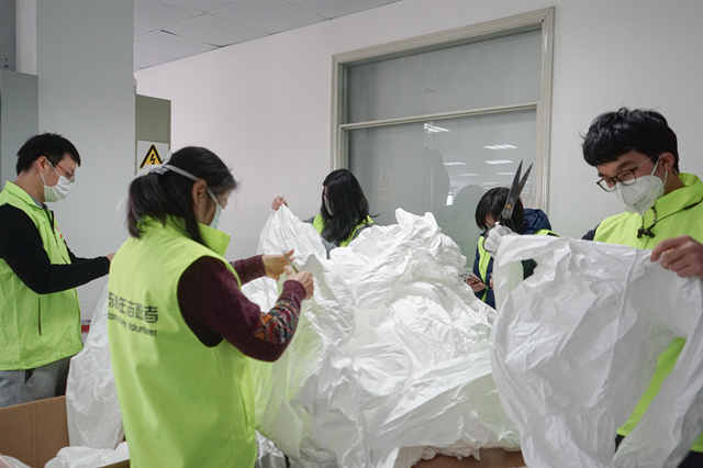 “防護服廠缺輔工,具體工種包括產品整理、質檢、包裝,需要志愿者幫忙!”2月9日,浦東新區科經委就相關情況與團區委對接后,團區委立刻行動起來,著手進行志愿者招募及后續工作。當晚9時許,通過直屬團組織、區青聯、青年社會組織等微信群,發布了招募防護服生產服務志愿者的海報。短短12個小時,就報名700多人,其中還包括不少外區的志愿者。征集令發出后的第二天一早,支志愿者小分隊就來到工廠報到上崗!