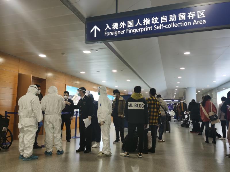 洋山海關(guān)查驗(yàn)三科副科長(zhǎng)李振卿3月5日晚上接到征集令,3月6日就已上崗浦東機(jī)場(chǎng)國(guó)門衛(wèi)生檢疫崗。任務(wù)應(yīng)接不暇,他隨時(shí)切換,時(shí)而是流行病學(xué)調(diào)查(即“流調(diào)”),時(shí)而是去旅客等候處現(xiàn)場(chǎng)維持秩序、進(jìn)行人員分流等。3月6日,已有從上海海關(guān)各隸屬海關(guān)調(diào)集而來的50余位具醫(yī)學(xué)背景的關(guān)員,火線支援浦東機(jī)場(chǎng)防輸入一線,且其中相當(dāng)一部分如李振卿一樣是“二次支援”——他在2月1日至2月23日,增援浦東機(jī)場(chǎng),專職流調(diào)和醫(yī)學(xué)排查,和他一樣首批支援到崗的關(guān)員有170余人。然而2月24日,他回洋山海關(guān)上班僅一周半,又迅速折返。