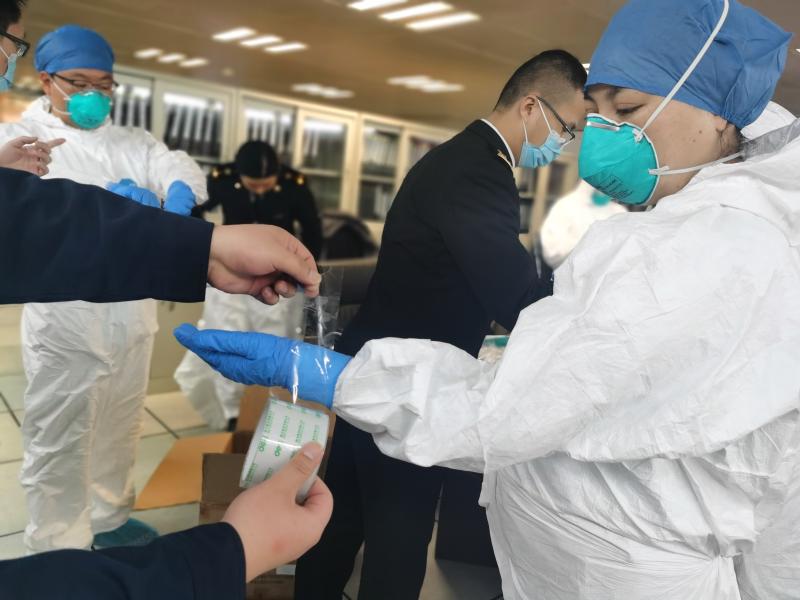一線的衛(wèi)生檢疫人員,已經(jīng)忙到根本沒時(shí)間坐下。他們的輪班是這樣的——從天9時(shí)到21時(shí),回家睡一覺,第二天又來上班,從21時(shí)做到第三天的9時(shí)。他們從節(jié)前一直戰(zhàn)斗到現(xiàn)在,其中,有人取消了婚期,有人無法陪夫人分娩,也有人將兩個(gè)孩子單獨(dú)拋在家中。隔三差五,就有人忙到昏倒——他們穿著規(guī)定時(shí)效為4小時(shí)的防護(hù)服,但往往10小時(shí)都脫不下來,期間滴水不沾、粒米不進(jìn),也不上廁所。記者在現(xiàn)場(chǎng)看到,有檢疫關(guān)員們正在互相幫助改善防護(hù)服——沒有更高級(jí)別的膠條防護(hù)服,他們只能用玻璃膠布幫助同事將手腕處手套與防護(hù)服的連接處盡可能地封住。他們都很珍惜防護(hù)物資,專門有個(gè)物資小組,每天掌握庫存、統(tǒng)計(jì)現(xiàn)場(chǎng)使用量,再精準(zhǔn)地向上級(jí)申請(qǐng)。