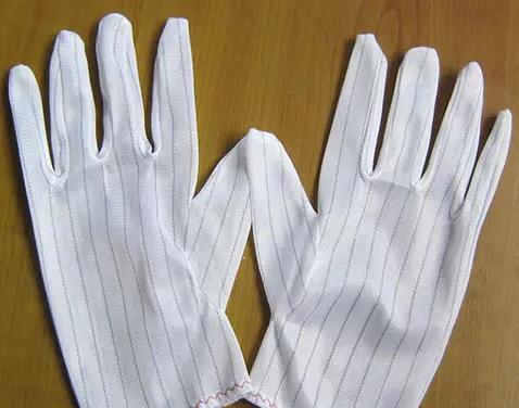 含導電纖維的手套使聚積在手上的靜電很快消失。有聚氨酯或聚乙烯涂層的手套主要是不易產生塵埃和靜電。這些產品主要用于弱電流、精密儀器的組裝、產品檢驗、電子產業、印刷、各種研究機關的檢驗工作等。
