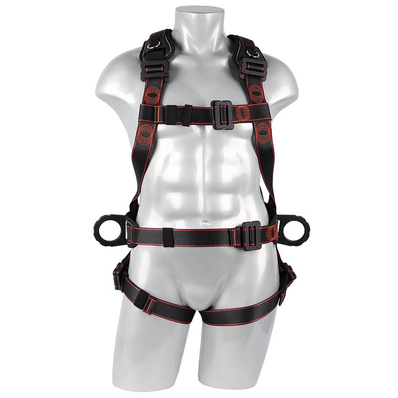 訂貨號:630122022型號:FA30504-Arc產品描述:5點可調全身式安全帶主帶由高強滌綸織帶制成肩帶、胸帶、腰帶和腿帶配有絕緣防電弧調節扣1個后背絕緣防電弧D環掛點,用于防墜落2個側
