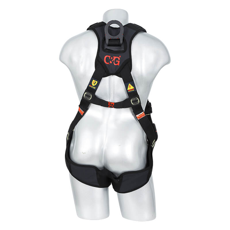 1、4個掛點:后背1個,胸前1個,腰部2個,2、5個調節點:腹,胸,肩3、織帶材質:芳綸+合成纖維4、五金件:合金鋼+絕緣復合層5、調節扣:口日字6、帶護腰7、標準:GB6095-20218、適用:區域限制、