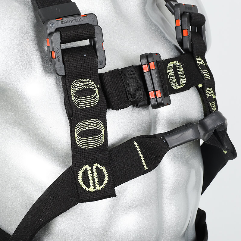 1、4個掛點:后背1個,胸前1個,腰部2個, 2、5個調節點:腹,胸,肩 3、織帶材質:芳綸+合成纖維 4、五金件:合金鋼+絕緣復合層 5、調節扣:口日字 6、帶護腰 7、標準:GB6095-2021 8、適用:區域限制、圍桿作業、墜落懸掛