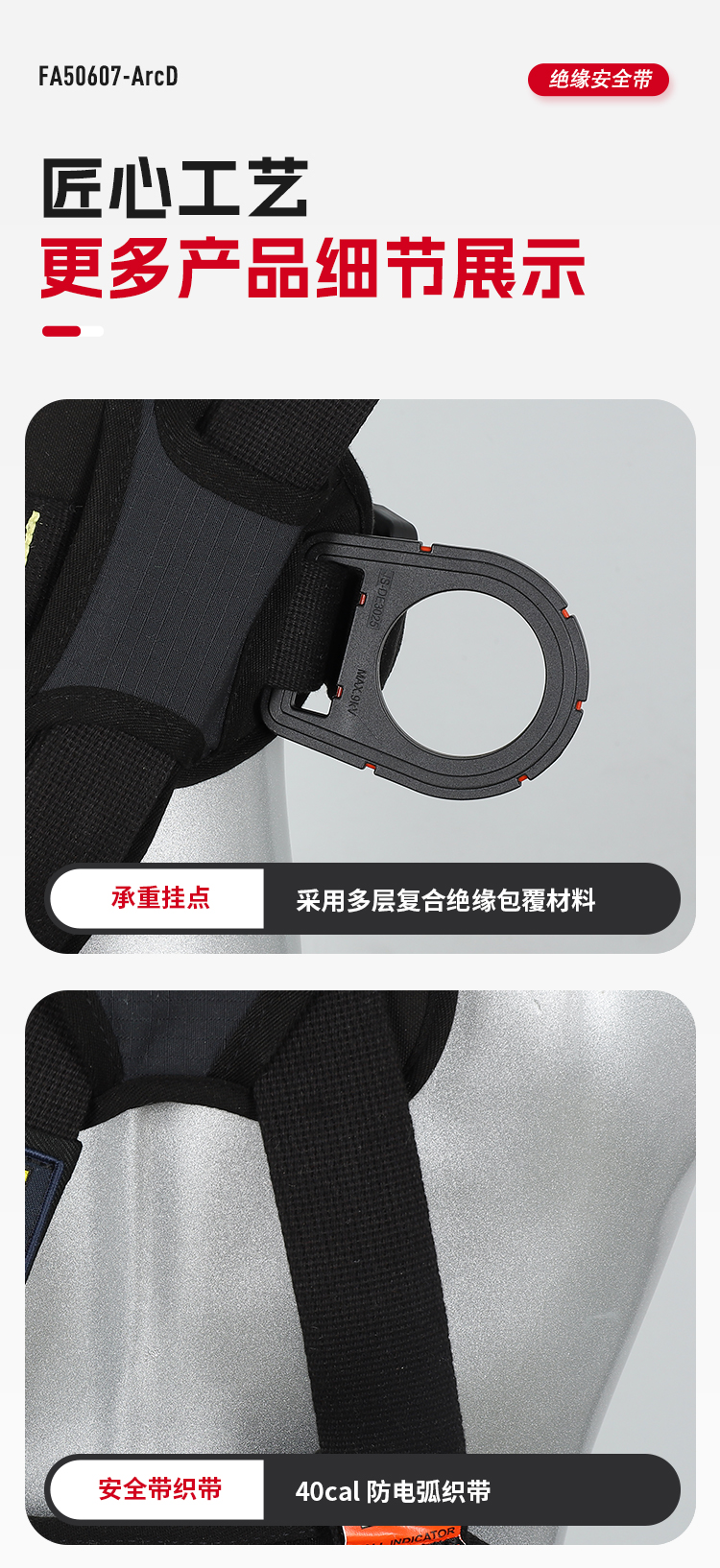 1、5個(gè)掛點(diǎn):后背1個(gè),胸前1個(gè),腰部2個(gè),肩部 2、5個(gè)調(diào)節(jié)點(diǎn):腹,胸,肩 3、織帶材質(zhì):芳綸+合成纖維 4、五金件:合金鋼+絕緣復(fù)合層 5、調(diào)節(jié)扣:口日字 6、帶護(hù)腰 7、標(biāo)準(zhǔn):GB6095-2021 8、適用:區(qū)域限制、圍桿作業(yè)、墜落懸掛 9、訂貨號:630825013