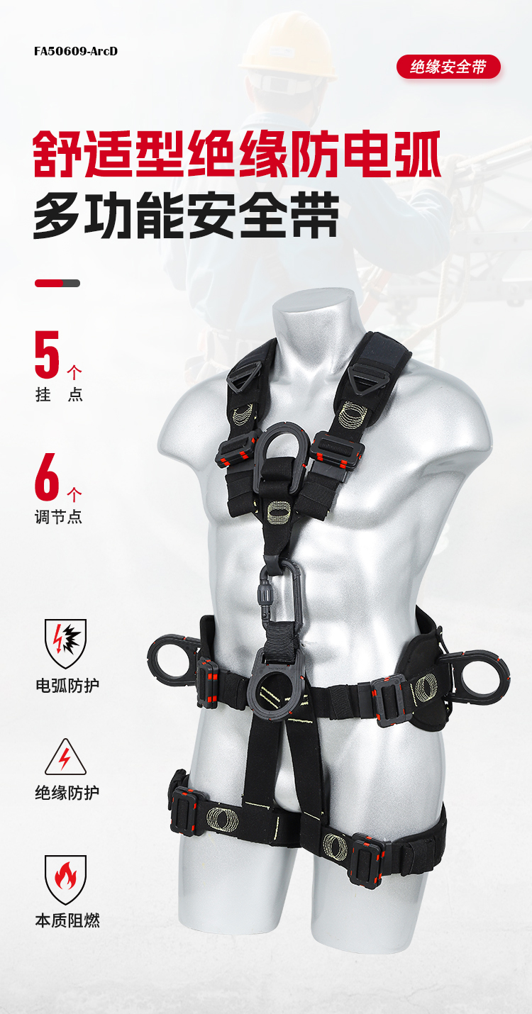 1、5個掛點(diǎn):后背1個,胸前1個,腰部2個,腹部1個 2、6個調(diào)節(jié)點(diǎn):腰、肩、腿 3、織帶材質(zhì):芳綸+合成纖維 4、五金件:合金鋼+絕緣復(fù)合層 5、調(diào)節(jié)扣:口日字 6、帶護(hù)腰 7、標(biāo)準(zhǔn):GB6095-2021 8、適用:區(qū)域限制、圍桿作業(yè)、墜落懸掛