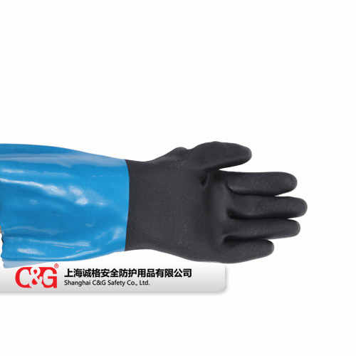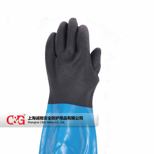 PVC涂層防化手套主要應用于化工行業、汽車、機械、化學品處理、實驗室等工作場所,PVC涂層提供更好的耐油性能,掌部防滑加工在干濕環境下依舊有較好的防滑性能。