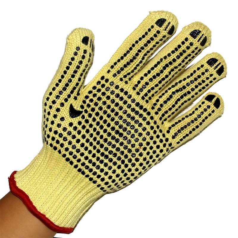 芳綸防割點珠防滑手套適應于玻璃處理、汽車組裝、電子、普通維護工作,制造業、耐輕熱等