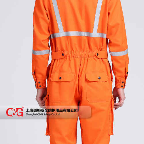 產(chǎn)品描述:200g/㎡,阻燃防護(hù)服采用杜邦™Nomex® IIIA面料制作。立領(lǐng)設(shè)計(jì),兩個(gè)胸帶皆為雙線縫制,兩個(gè)后褲袋及斜插袋,前襟銅拉鏈加內(nèi)置四合扣封閉,橡皮帶收腰,采用配色阻燃線雙線埋夾縫制。